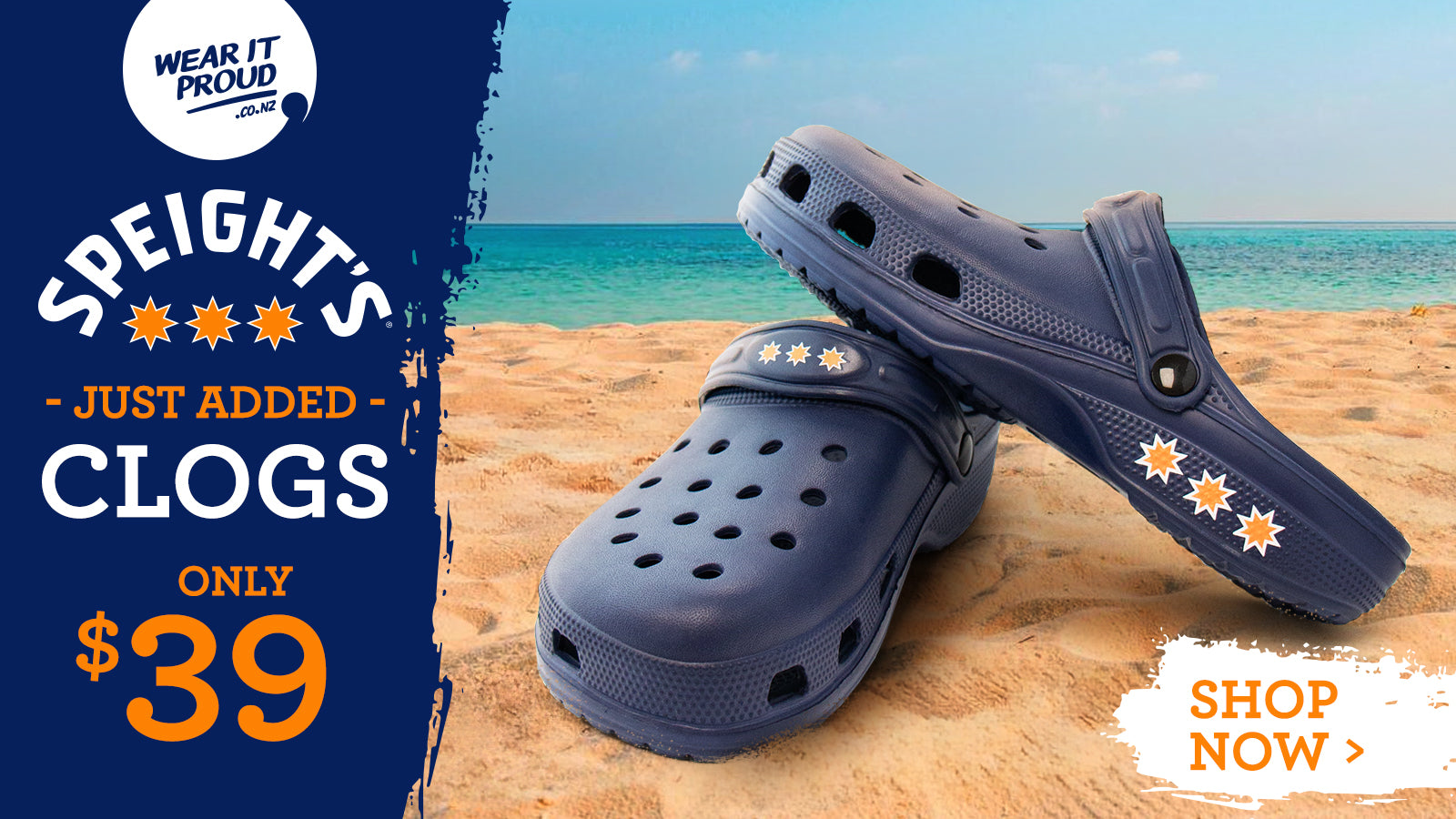 Show off your stars in sports mode or relaxed mode! Β Speight's Clogs are the perfect BBQ or beach wear to be seen in this summer! Available in 3 sizes so no matter how huge your hoofs are you can still shine with Southern pride!